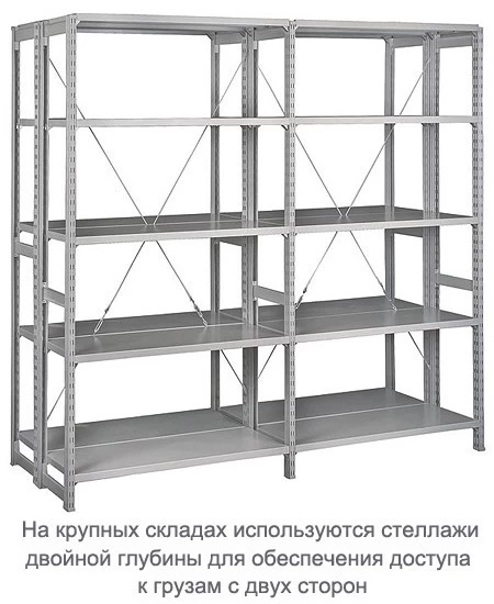 - Среди достоинств данного вида мебели отметим возможность соединения нескольких стеллажей в линию, что позволяет организовать вместительную стеллажную систему для склада или любого обширного помещения.