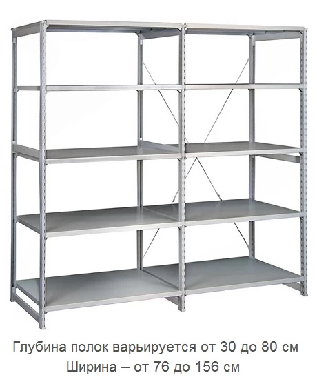 - Среди достоинств данного вида мебели отметим возможность соединения нескольких стеллажей в линию, что позволяет организовать вместительную стеллажную систему для склада или любого обширного помещения.