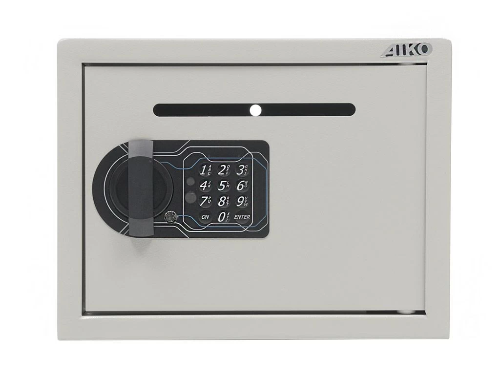 Электронный замок запирается цифровым кодом, от трёх до восьми цифр; предусмотрена система защиты от подбора кода, а также система звукового и светового оповещения. Шифр без труда можно поменять, что актуально при использовании в гостиницах и отелях. К замку прилагается аварийный мастер-ключ, позволяющий открыть сейф при утере кода. Для питания замка требуется четыре батарейки класса АА.