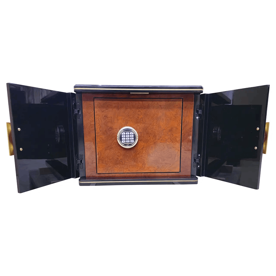 Сейф под интерьер с отделкой деревом, внутренней отделкой алькантара